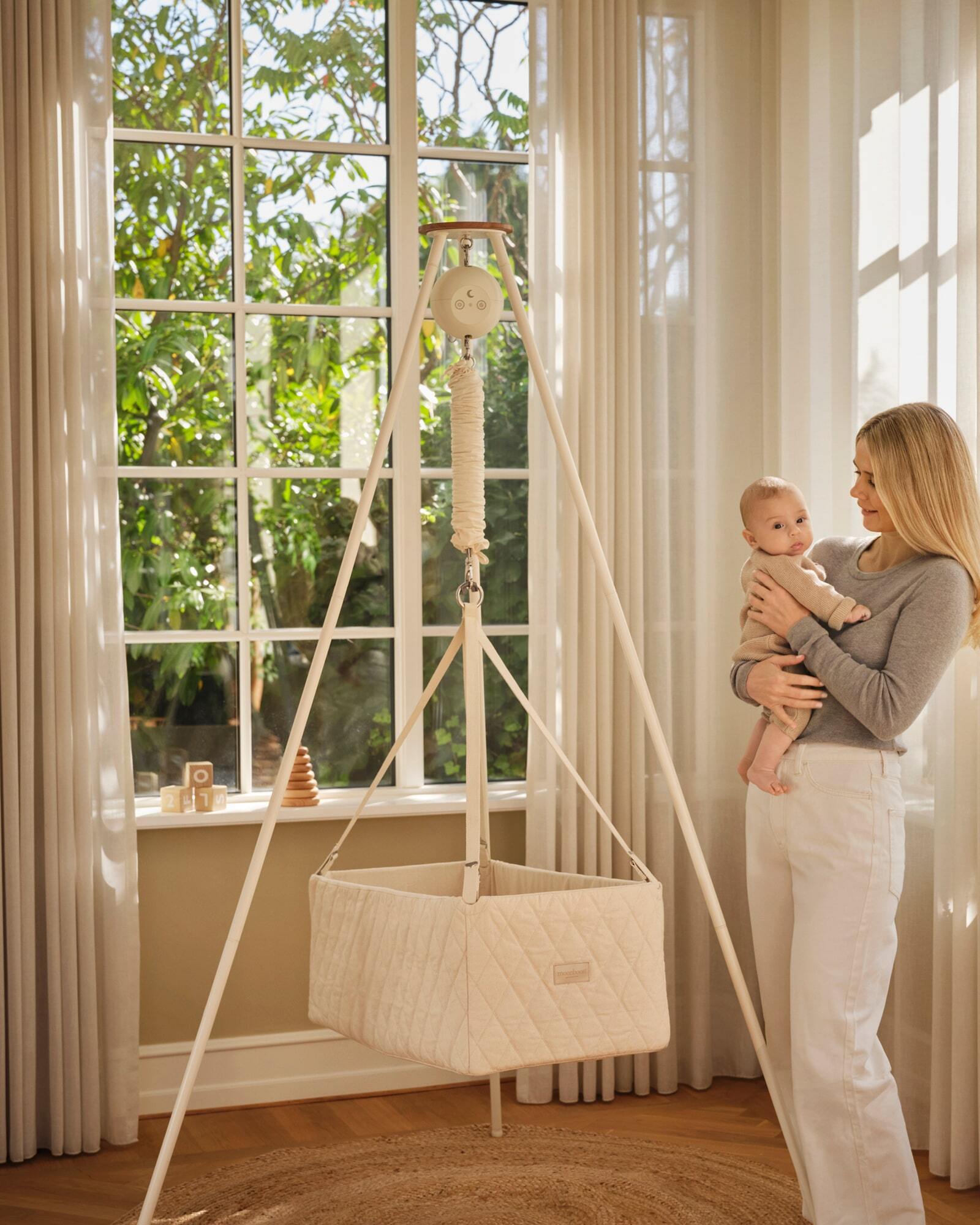 Geef je kleintje de best mogelijke omgeving om te slapen. De knusse wieg met de vlakke bodem zorgt voor een comfortabel bed dat zachtjes wordt gewiegd door onze motor, terwijl de stevige statief standaard er in elke kamer stijlvol uitziet.