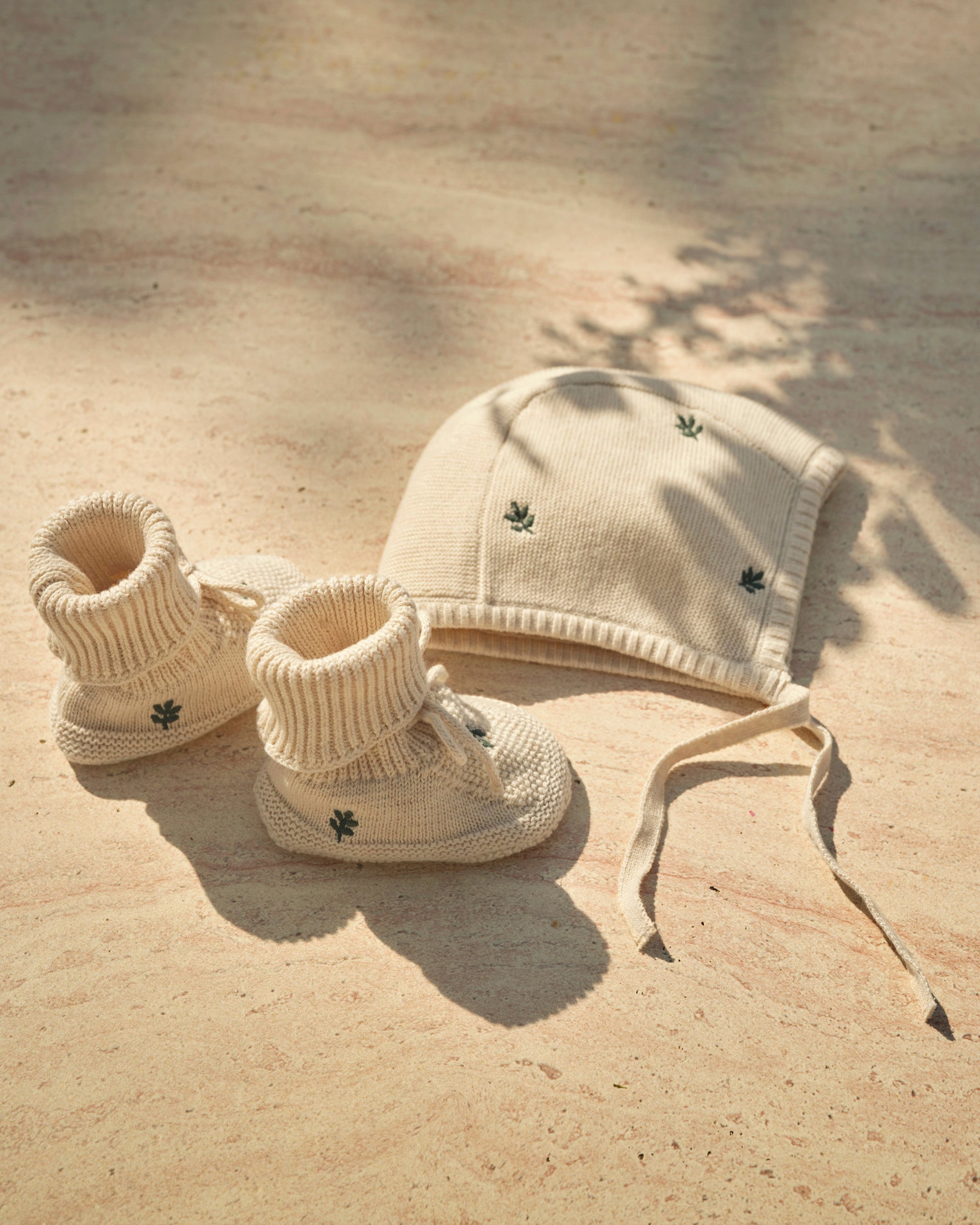 Deze bijpassende set is afgewerkt met charmante borduursels en geeft elke babyoutfit een schattig en tijdloos tintje. Perfect voor de allereerste uitstapjes.
