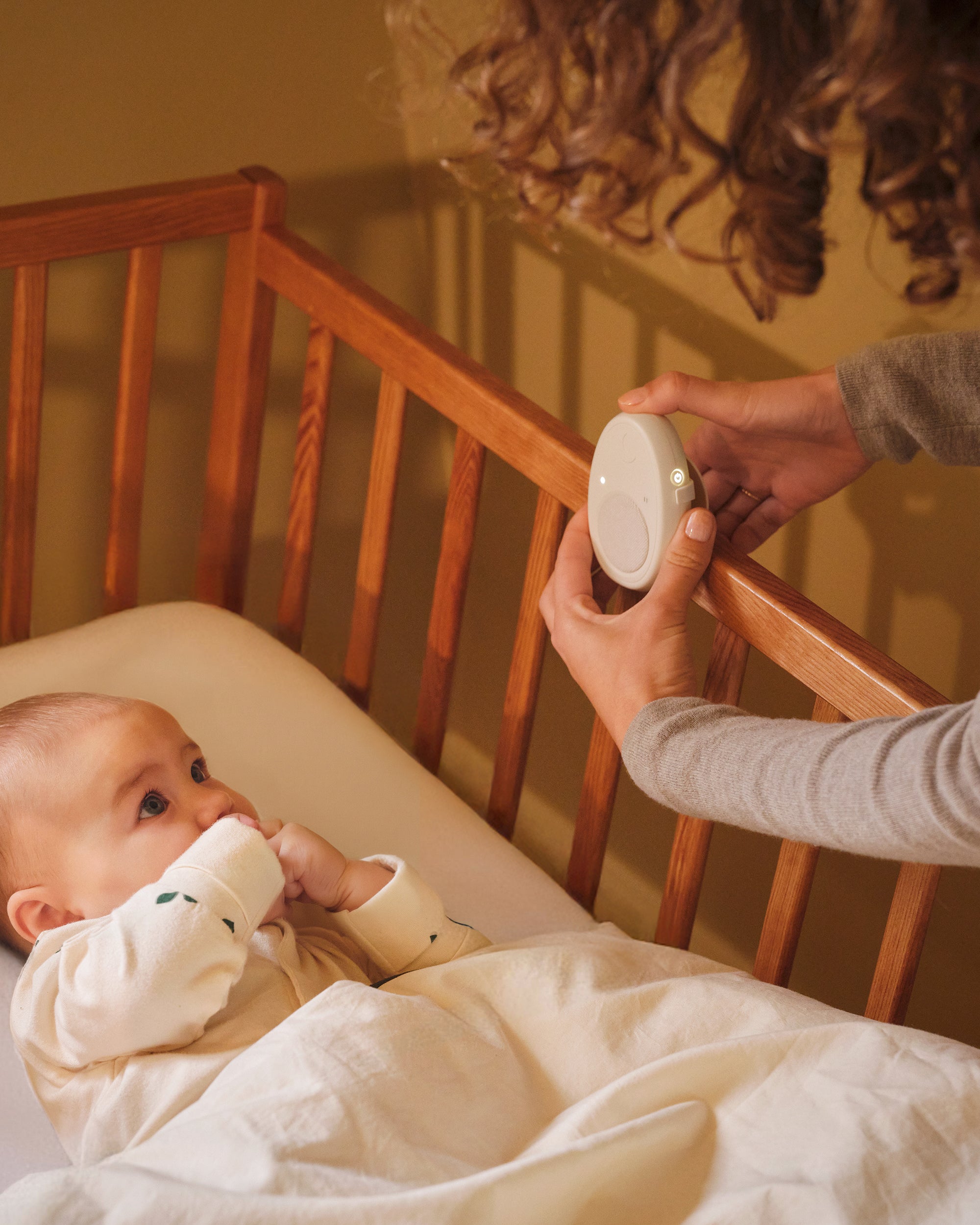 Met zijn eenvoudige, elegante ontwerp houd je je baby in de gaten en ontvang je meldingen via geluid, zachte trillingen en lichtsignalen, zodat je elke beweging of elk huiltje opmerkt, zelfs in drukke of lawaaierige omgevingen.
