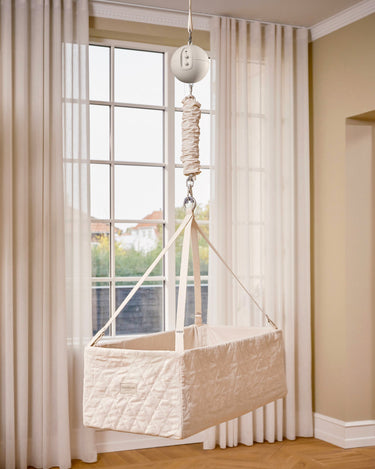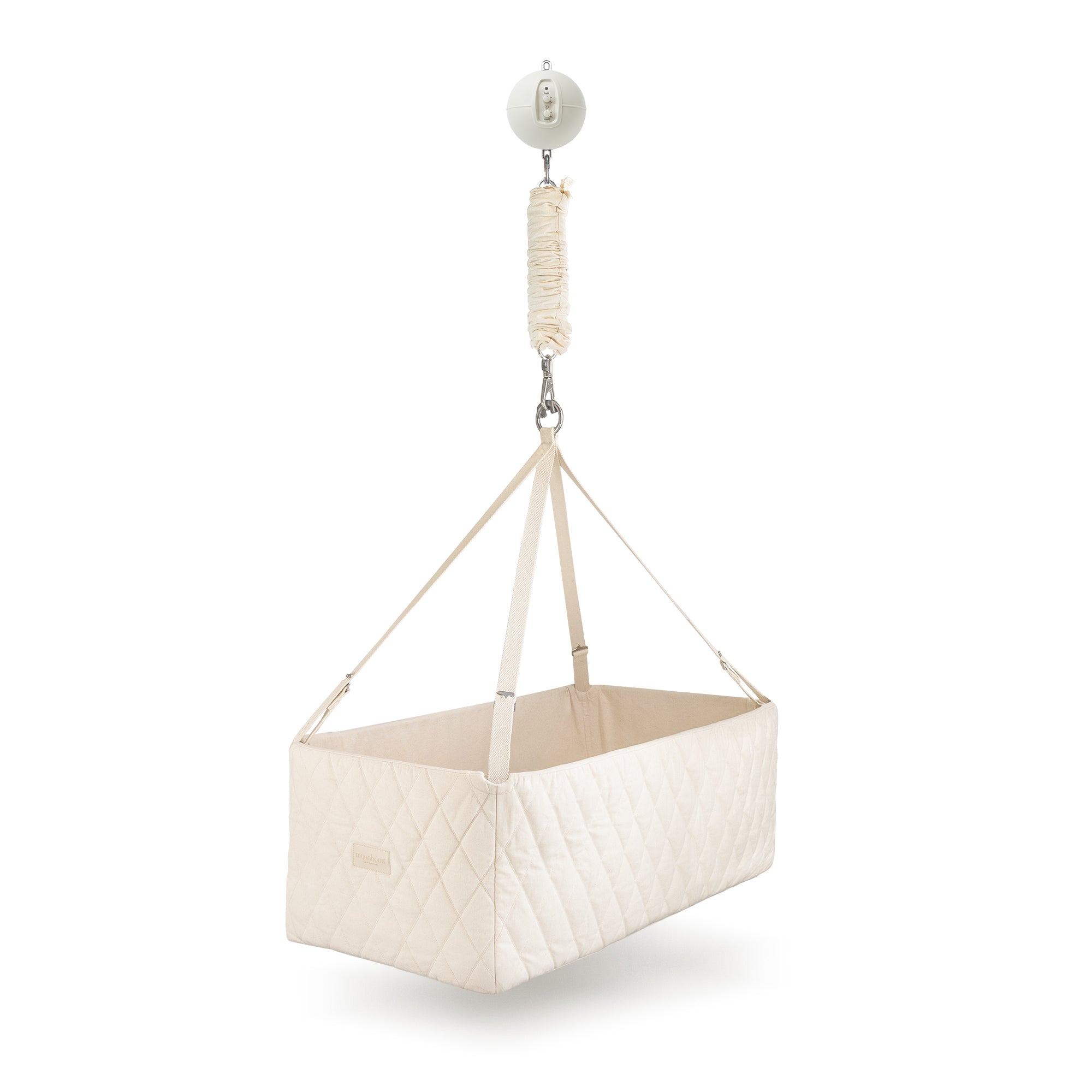 De wieg is gemaakt van kwalitatief hoogwaardige materialen, waaronder biologisch katoen met GOTS-certificaat, en onze stille motoren zijn zorgvuldig ontwikkeld en getest door Deense ingenieurs.