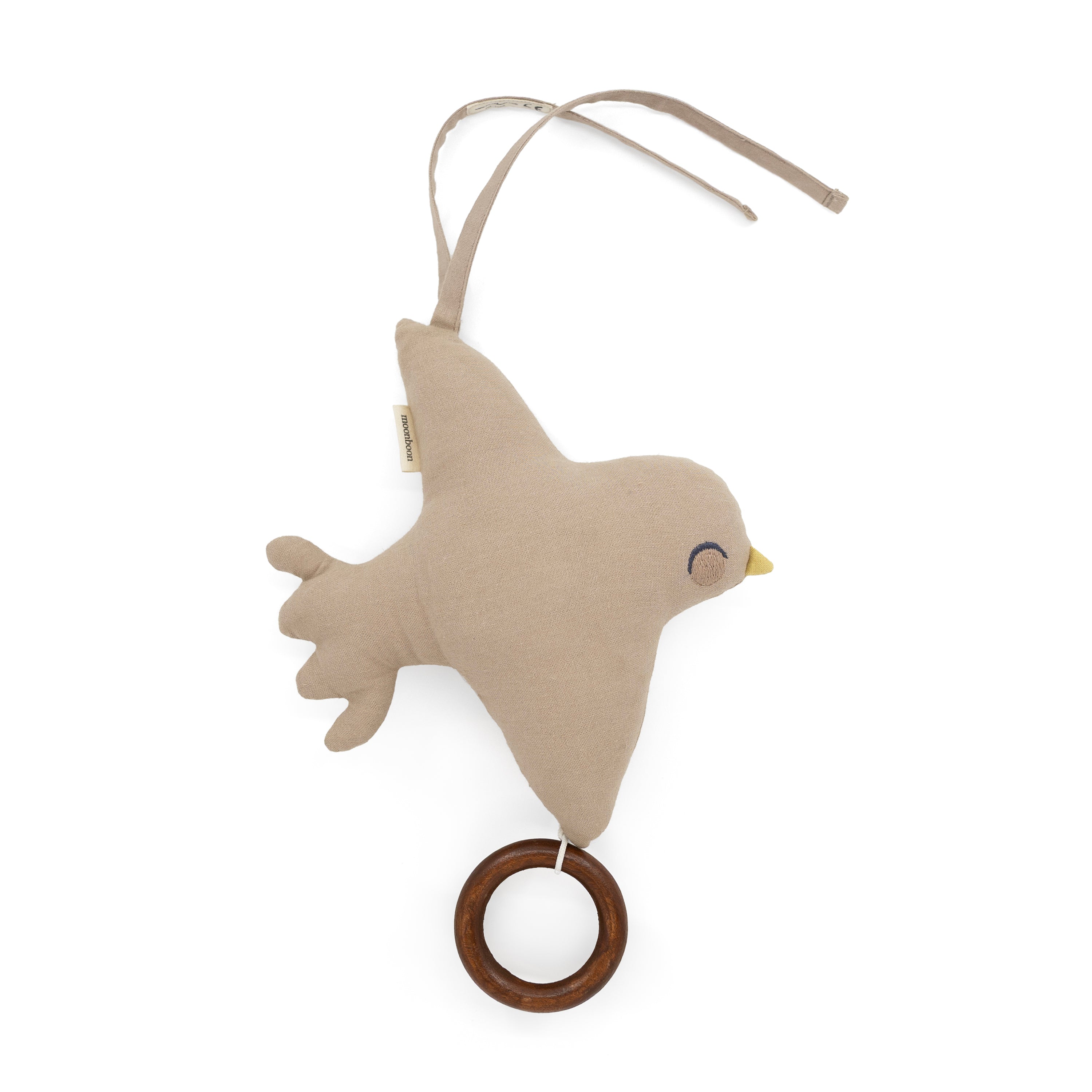 Kies uit twee charmante ontwerpen: een gewatteerde maan in een rustgevende natuurlijke kleur, of een sierlijke vogel in onze aardetinten. Beide versies zijn met zorg gemaakt van gecertificeerd biologisch katoen, met natuurlijke materialen en een zachte esthetiek die perfect in elke kinderkamer past.